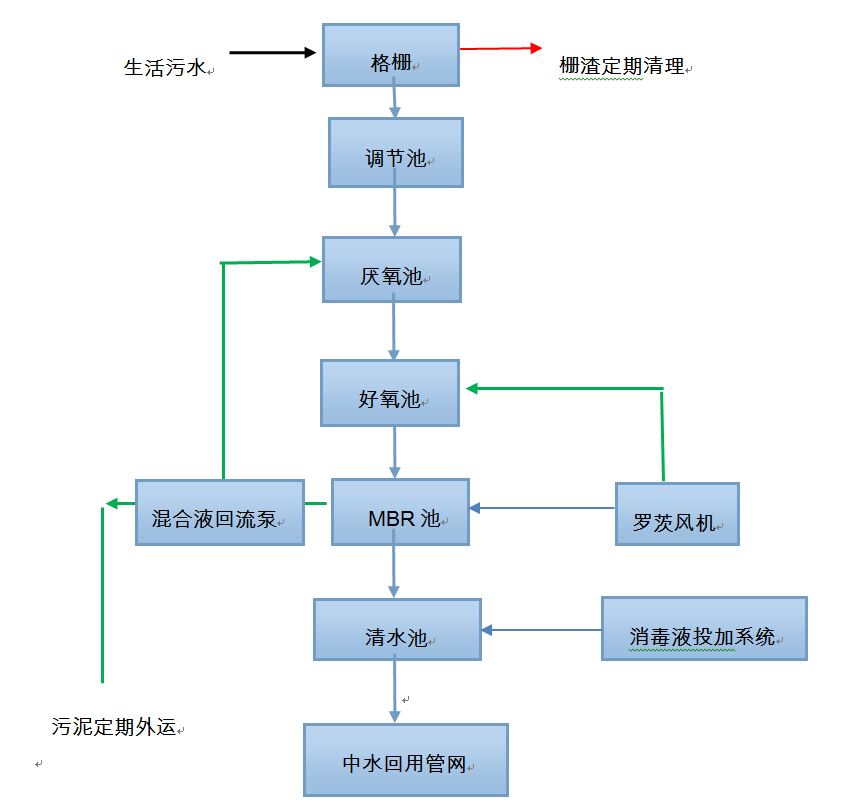 一體化MBR膜污水處理設(shè)備,MBR膜污水處理設(shè)備出水達(dá)到《城鎮(zhèn)污水處理廠污染物排放標(biāo)準(zhǔn)》GB 18918-2002中的一級(jí)A標(biāo)準(zhǔn)。出水用于廠區(qū)綠化用水,即節(jié)約用水又防止了污水外排,保護(hù)了環(huán)境。由于原有生活污水沒有進(jìn)行處理,為響應(yīng)國家對(duì)生活污水的處理要求,達(dá)到國家的排放標(biāo)準(zhǔn),經(jīng)過用戶的多方對(duì)比,選擇了我公司生產(chǎn)的一體化污水處理設(shè)備一套。處理量為36t/d一體化MBR膜污水處理設(shè)備。
